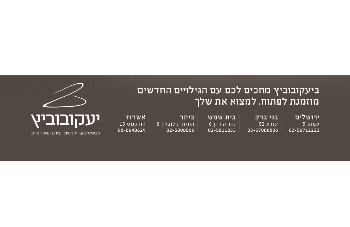 ₪10,000 לקניית תכשיטי זהב ויהלומים ב'יעקובוביץ'